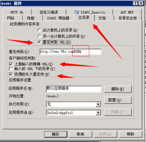 打開(kāi)IIS網(wǎng)站屬性找到主目錄選擇重定向到url,同時(shí)選擇資源的永久重定向和上面輸入準確的url