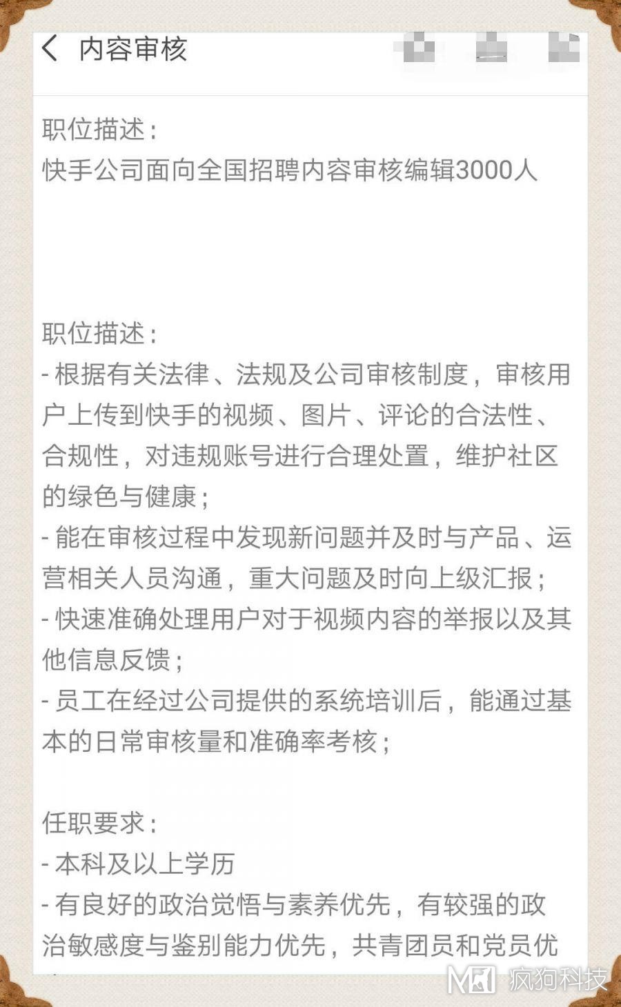 在這之后,快手App從安卓應用商店下架??焓诌€宣布,公司面向全國招聘內容審核編輯3000人。